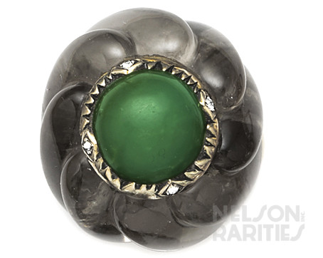 Cabochon-Cut Jade, Carved Rock Crystal and Gold Ring