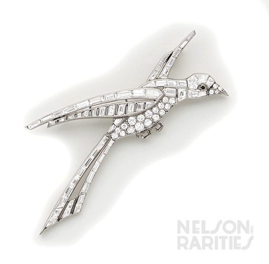 Channel Set Baguette Diamond, Pavé Diamond, Diamond and Platinum Cornucopia Brooch